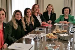 Συζητήθηκε η ενδιαφέρουσα πρωτοβουλία της ΚΕΔΕ για ίδρυση σε κάθε δήμο της χώρας που οι συνθήκες το απαιτούν, επιχειρηματικών κέντρων όπου θα μπορεί να απευθύνεται κάθε γυναίκα επιχειρηματίας για να βρει λύσεις σε επαγγελματικά θέματα, να ενισχύσει το networking της και να ενημερωθεί για τις νέες τεχνολογίες.
